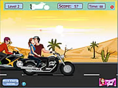 A game based on a couple that's head over heels for each other, and they can't stop kissing even when they're riding their motorcycle. Help them do it without being watched; if that happens, you lose.